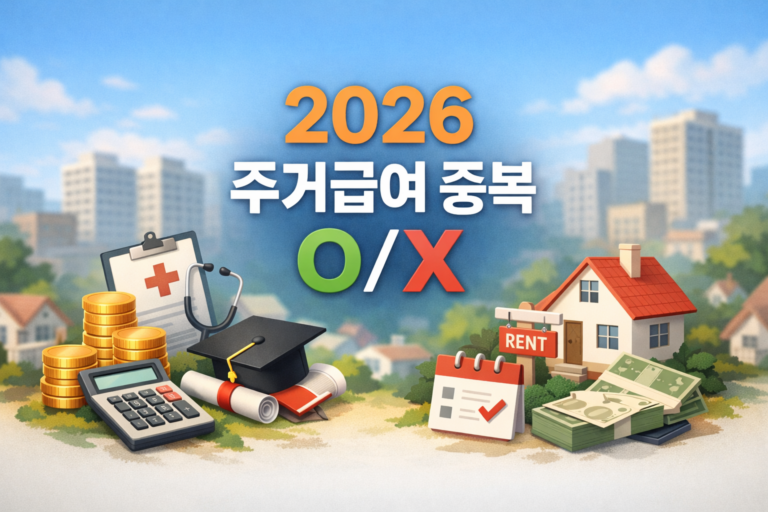 2026년 주거급여 중복수급 가능 여부를 생계·의료·교육급여 및 청년월세지원과 비교 정리했습니다. 제도별 조건과 조정 원칙, 신청방법 확인 포인트까지 안내합니다. 도입부 요약 주거급여를 받고 있거나 신청하려는 사람 중 이미 다른 복지를 받는 경우가 많습니다.가장 헷갈리는 기준은 **“같이 받을 수 있는지, 아니면 하나만…